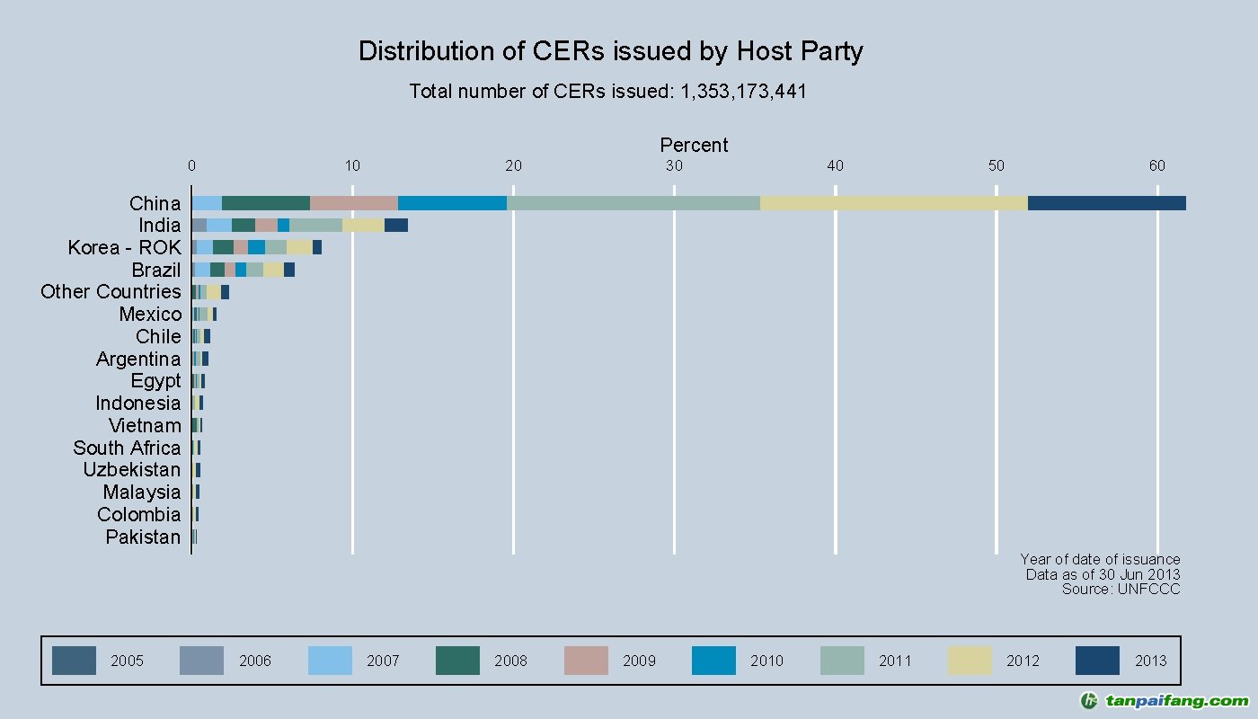 各類型CDM項(xiàng)目CERs簽發(fā)量和占比統(tǒng)計(jì)