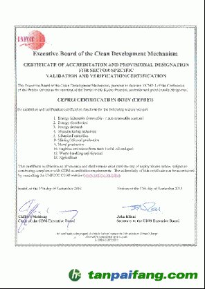 認(rèn)證中心得到了聯(lián)合國(guó)UNFCCC CDM 執(zhí)行理事會(huì)的認(rèn)可,成為DOE并在以下SCOPE具備審定和核查核證的能力: 本文`內(nèi)-容-來(lái)-自;中_國(guó)_碳_交^易=網(wǎng) tan pa i fa ng . c om