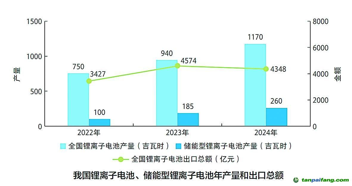 新型儲能產(chǎn)量保持增長態(tài)勢。2024年全國鋰離子電池產(chǎn)量持續(xù)攀升,總產(chǎn)量達(dá)11.7億千瓦時,同比增長24%,行業(yè)總產(chǎn)值超過1.2萬億元,其中,儲能型鋰離子電池產(chǎn)量達(dá)到2.6億千瓦時,占全國鋰離子電池產(chǎn)量22%,連續(xù)3年提升。 本+文`內(nèi)/容/來/自:中-國-碳-排-放-網(wǎng)-tan pai fang . com