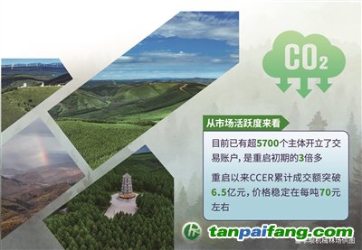 從市場(chǎng)活躍度來看,目前已有超5700個(gè)主體開立了交易賬戶,涵蓋項(xiàng)目方、企業(yè)、投資機(jī)構(gòu)等,是重啟初期的3倍多;重啟以來CCER累計(jì)成交額突破6.5億元,