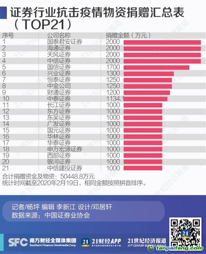 附圖表:證券行業(yè)抗擊疫情物資捐贈匯總表(TOP21) 禸*嫆唻@洎:狆國湠棑倣茭昜蛧 τāńpāīfāńɡ.cōm