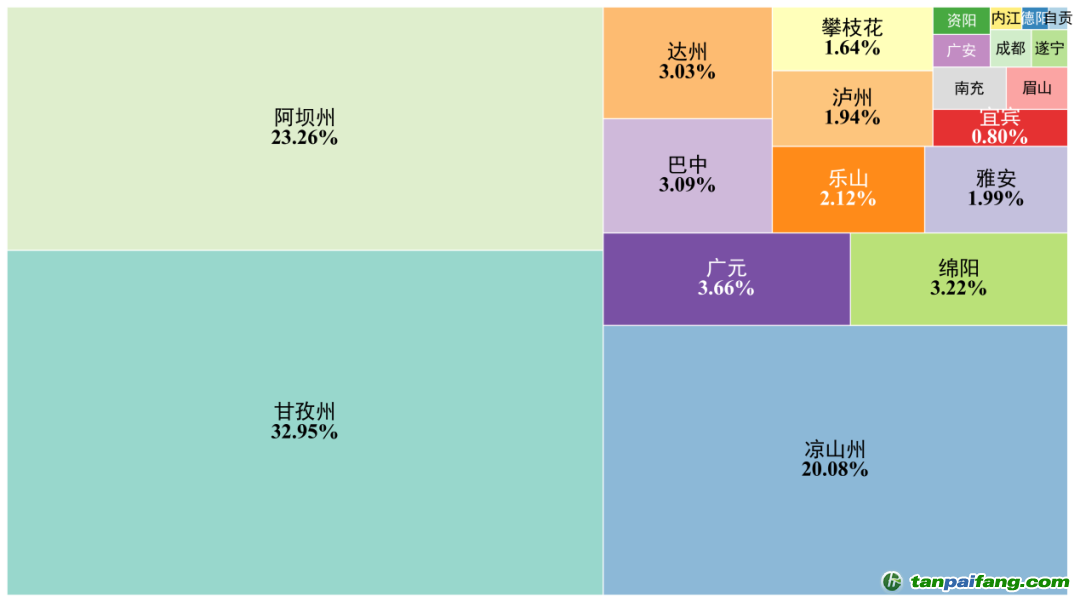 各市(州)多年平均林草碳匯資產(chǎn)比例。圖片來(lái)源:天府永興實(shí)驗(yàn)室。 本文@內(nèi)/容/來(lái)/自:中-國(guó)-碳^排-放-交易&*網(wǎng)-tan pai fang . com