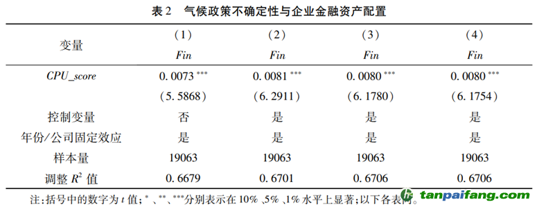 (1)氣候政策不確定性顯著提升了企業(yè)金融資產(chǎn)配置水平;