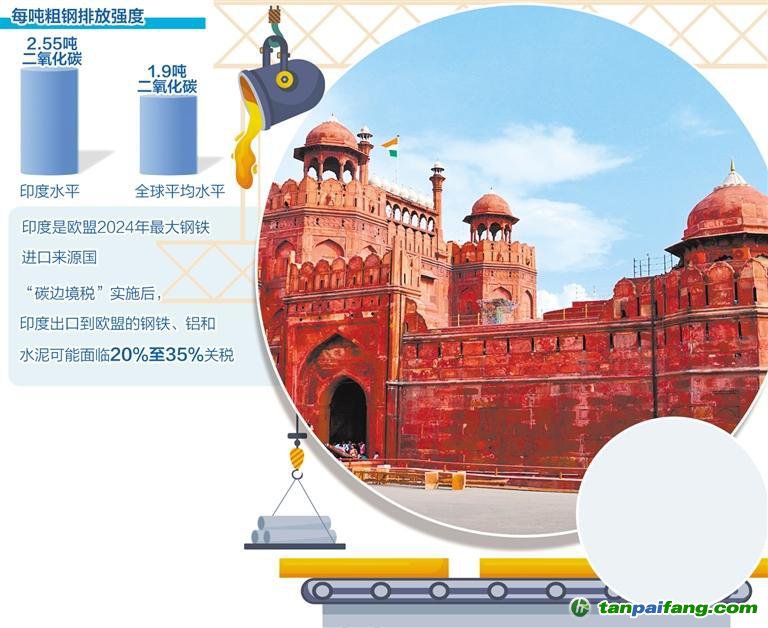 碳排放交易體系”相當(dāng)?shù)奶假M(fèi)用,簡(jiǎn)言之就是歐盟對(duì)來(lái)自氣候政策寬松國(guó)家的進(jìn)口高碳產(chǎn)品征收“碳差價(jià)”。該稅種涵蓋了印度對(duì)歐盟出口的上百個(gè)稅目,對(duì)印度經(jīng)濟(jì)特別是其關(guān)鍵的能源密集型出口產(chǎn)業(yè)造成重大挑戰(zhàn),直接影響鋼鐵、鋁等高碳排放產(chǎn)品,涉及印度對(duì)歐盟近100億美元產(chǎn)品的出口。